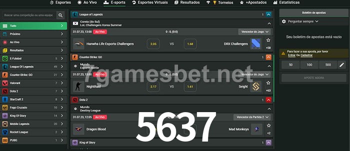 O 5637 oferece uma grande seleção de opções de apostas em e-sports com probabilidades competitivas